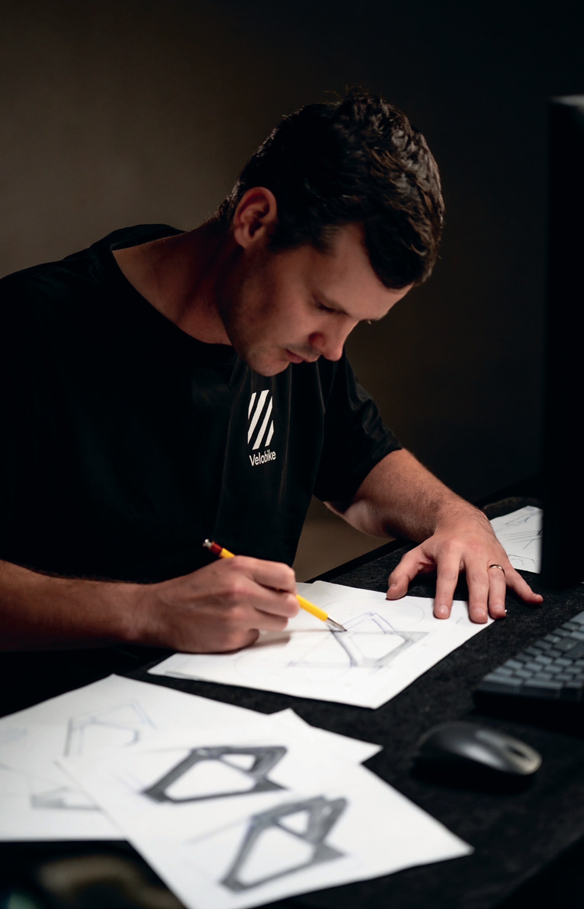 The Velobike range has grown over the years, beginning with chainrings and now encompassing specialist parts across a whole track bike, from cogs to handlebars and everything in between. Although they’ve had an almost complete range, there’s been one item that Glenn has been patiently developing to bring the selection of components together: an in- house-developed track-racing frame that adheres to his modular design philosophy, taking his learnings from the last eight years and bringing them to life.