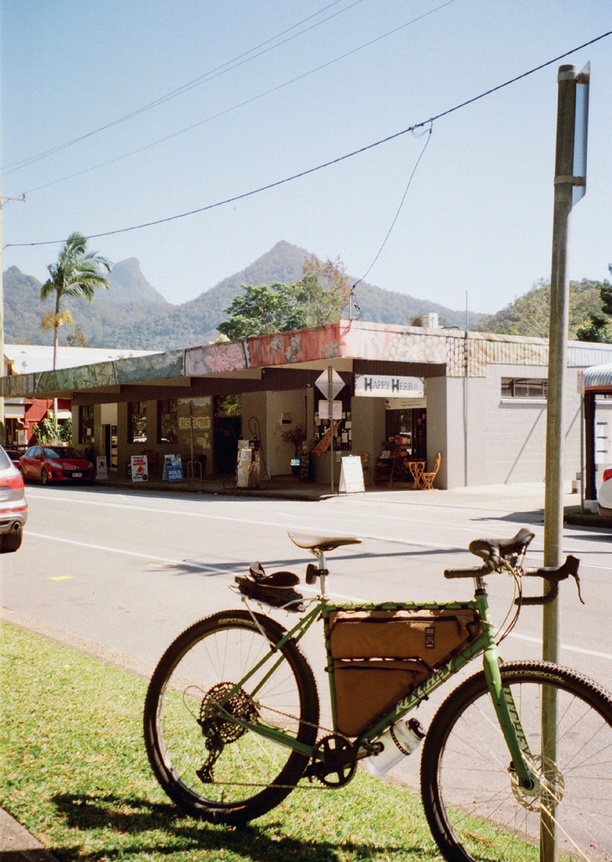 The next day, onshore winds prevailed and cancelled out most of the surf zones for the day. The strong wind also isn’t kind to cyclists, but I had already dreamt up several loops that I couldn’t wait to explore. And besides, staying in the camp cabin, watching the bloody news cycle with a glitching television, wasn’t the trip I had imagined. The route consisted of main roads, back roads, rail trails, and little hidden villages bordering Queensland and New South Wales. To get deeper, the surrounding hills would need to be tackled. Lush rainforest, champagne gravel roads, and tucked-away locations that felt like I’d gone back in time. They also provided a nice place to rest and get some sustenance. After a seven-hour ride, I collapsed on the couch in the tiny cabin after the ride. It was now getting dark, and I needed some food. I washed and rode over to Eddie’s Grub House. A dark, dingy surf bar with posters littering the brick walls, punk music played loudly, and beer served cold. I pulled up at the bar to eat a burger and fries – both were great – and sipped a beer whilst people-watching.