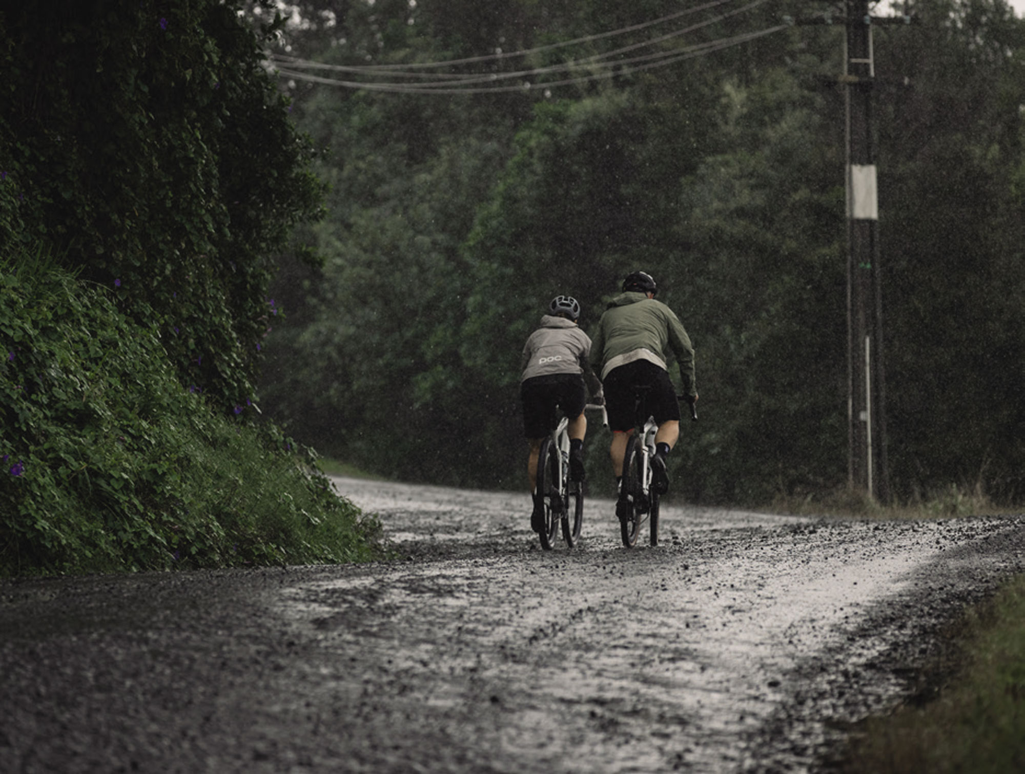 It’s an ideal location to sling gravel loops from, and it wasn’t long before our tyres crunched on the gravel beneath them. The quiet lanes rolled beside the endless fence posts. As we started to warm into the ride, the rain clouds rolled in. Now we would really experience the bloody elements! Heavy downpours ensued – grit, mud, and everything in between. In a weird way it was enjoyable – like being a kid playing in puddles. The rain came and went, in between hills, undulating gravel roads, and yarns. The world’s noise stopped for a moment as all our focus went into the ride. The loop was taxing but restorative.